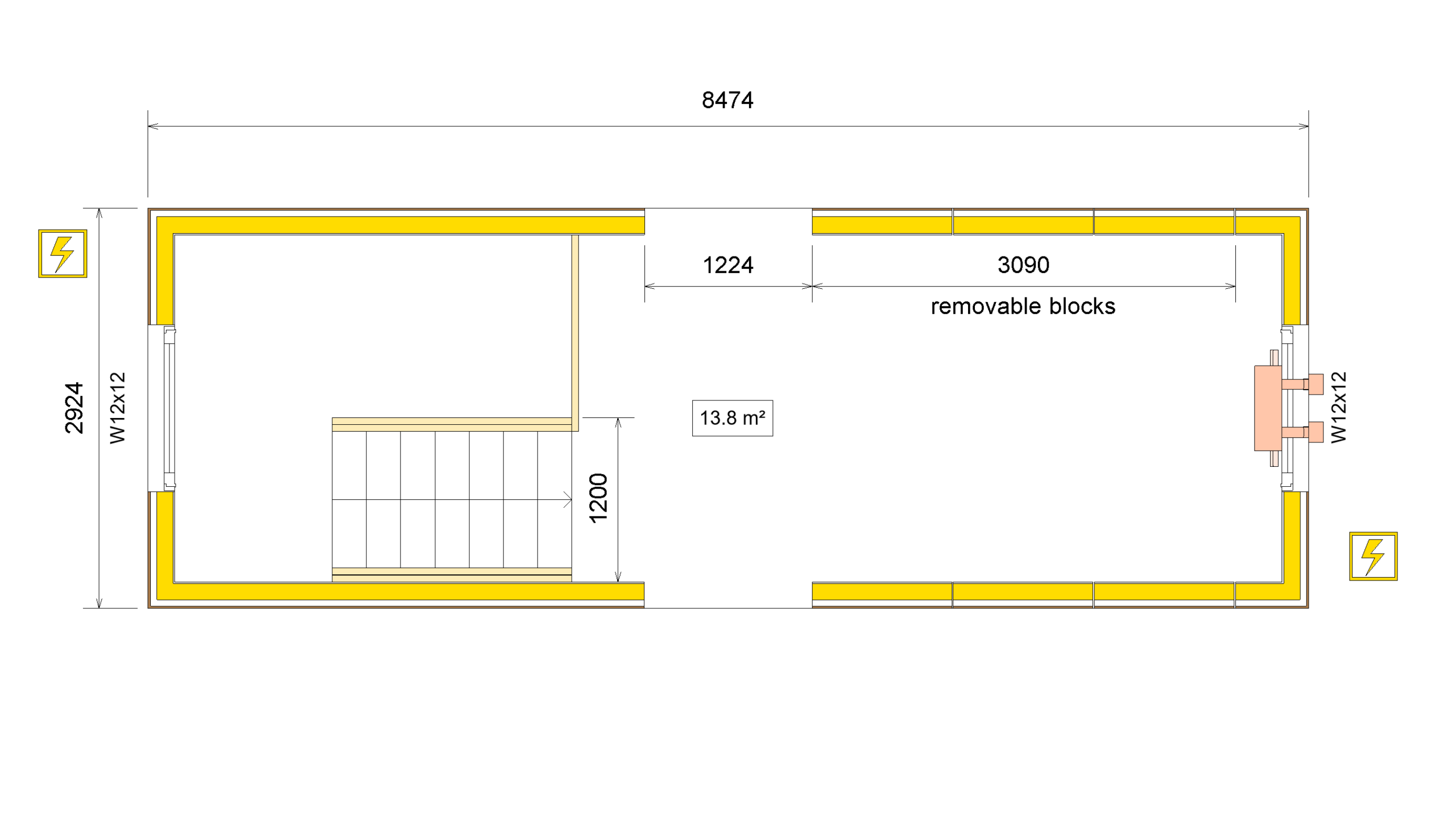 - Removable wall blocks to create an open space with a neighbouring module (e.g. SHAA20, -21, -22)