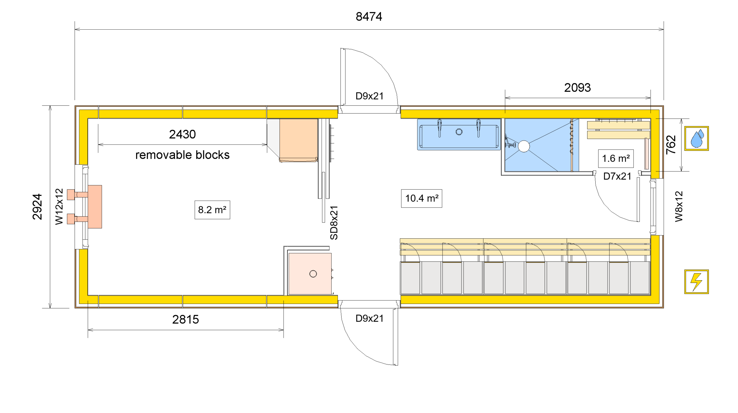 | Internal Dimensions (L x W x H) | 8084 x 2534 x 2400 |
