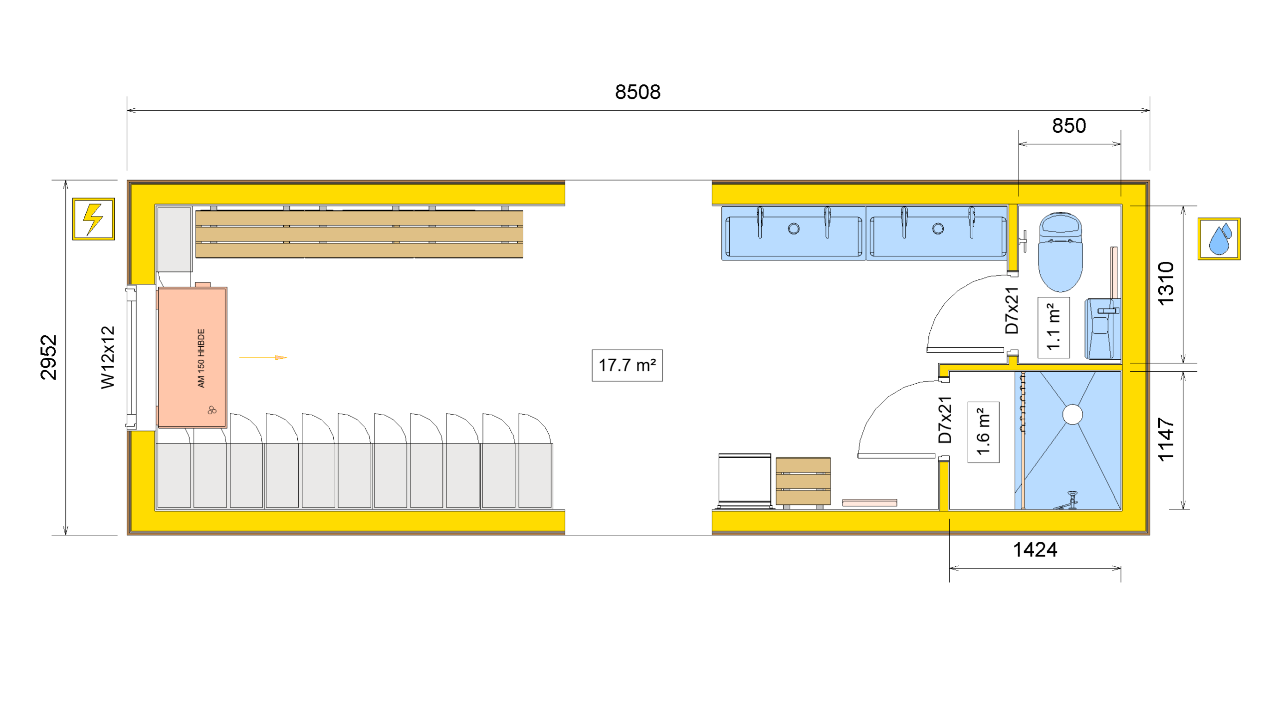 Water & Sewage ConnectionWater pipe Ø26,9 mm, Sewage pipe Ø110 mm