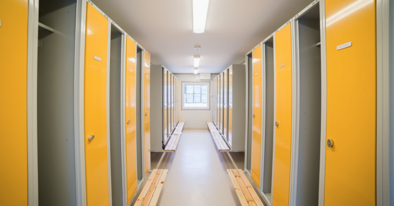 Modular buildings used for sports and community facilities such as locker rooms, youth centres and support buildings with flexible layouts and durable construction.