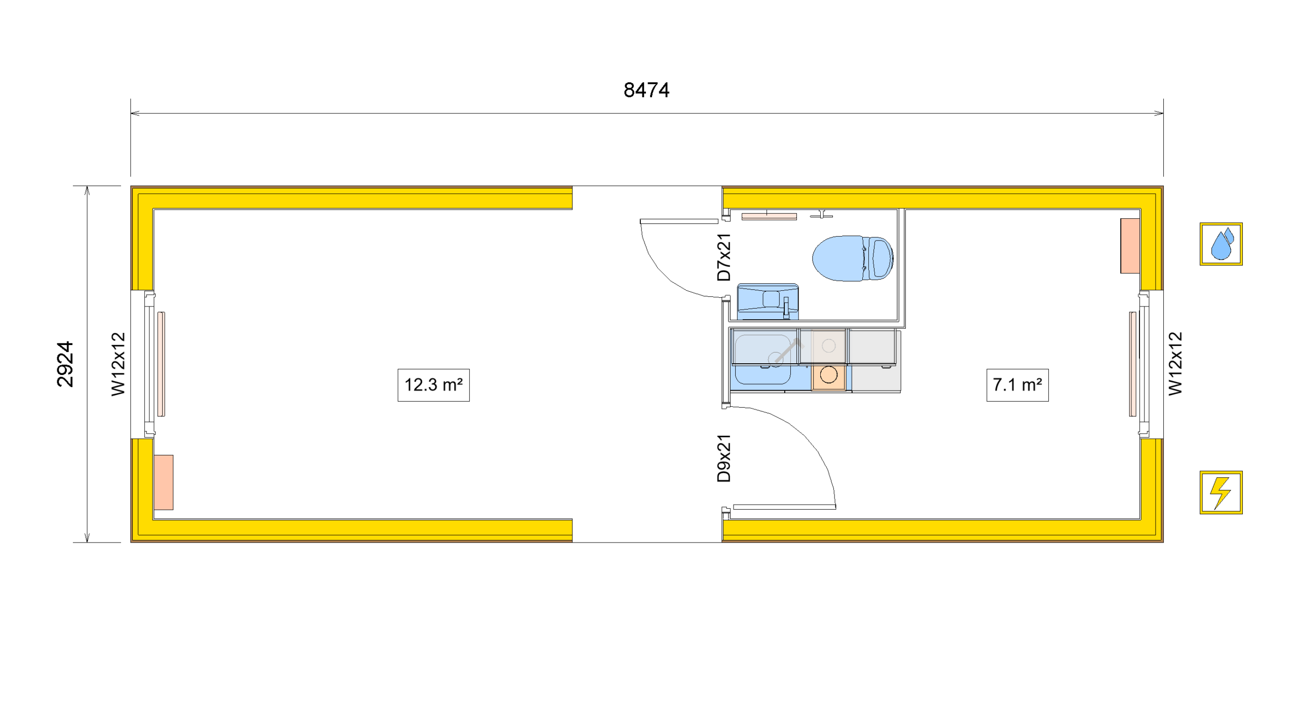 Water & Sewage ConnectionWater pipe Ø26,9 mm, Sewage pipe Ø110 mm