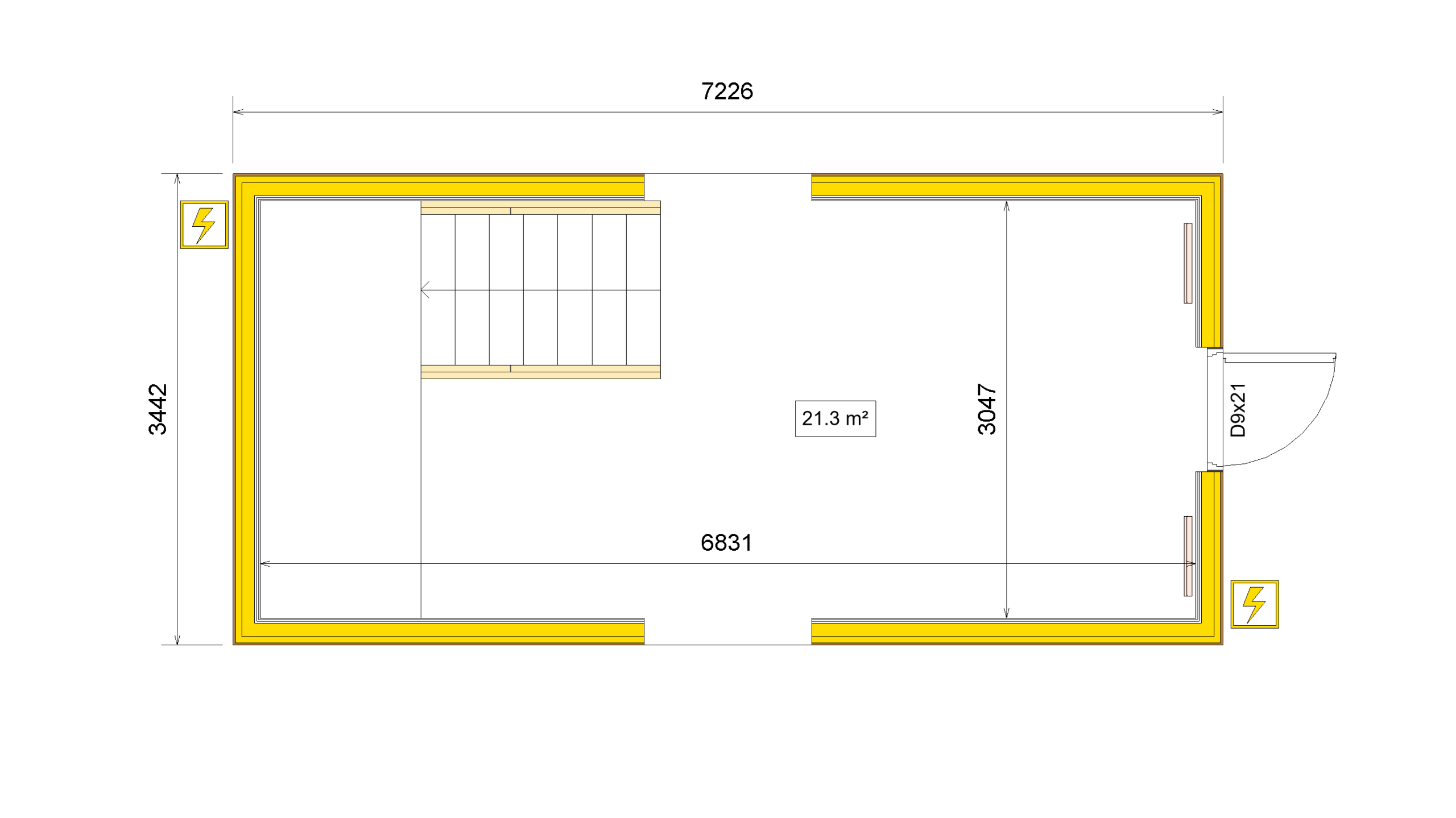 • Staircase: wooden structure with PVC covered steps